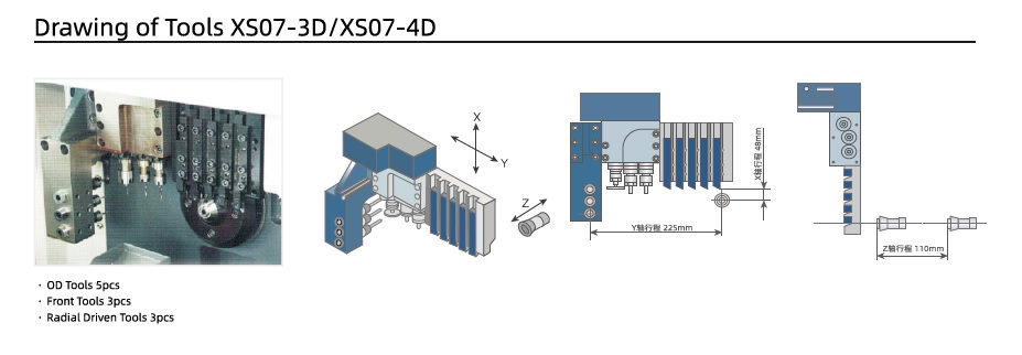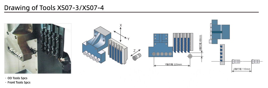 3. Bản vẽ dao cụ trên máy tiện tự động CNC kiểu thụy sĩ OBOT dòng XS07 chính xác cao